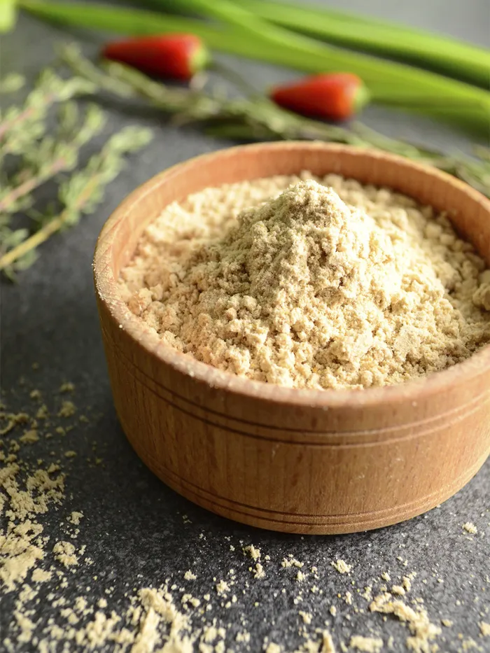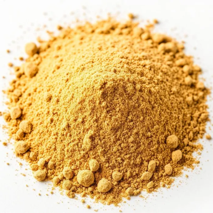 Молотая асафетида – это тонкий светло-желтый порошок с бежевыми вкраплениями. Обладает насыщенным специфическим ароматом, который теряется при длительном хранении.