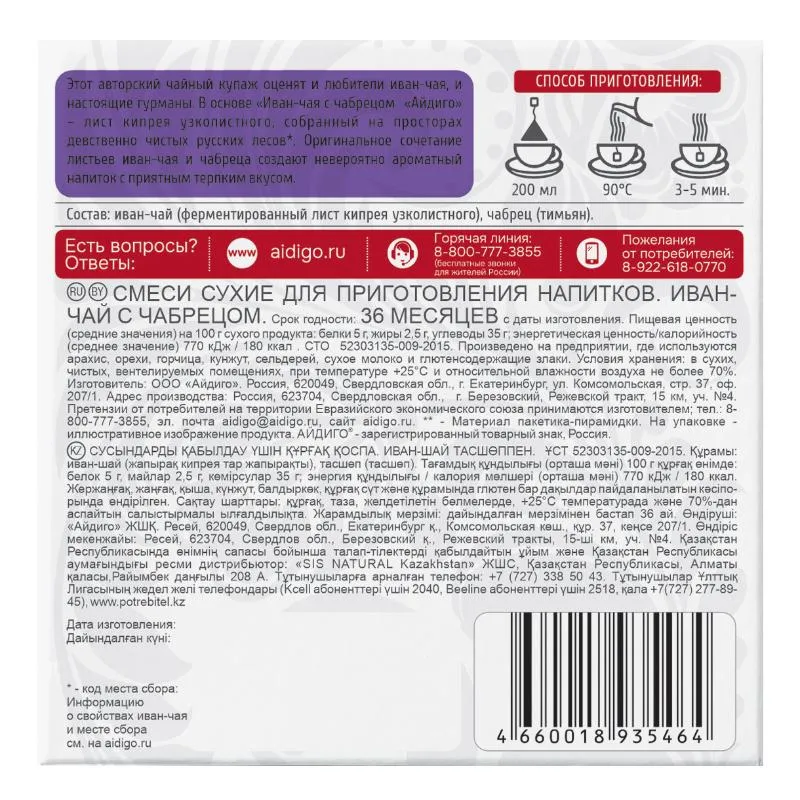 Состав: иван-чай (лист кипрея узколистного), чабрец.