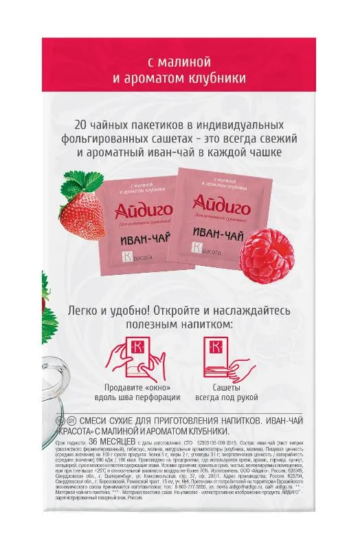 / Иван-чай в саше Красота: с малиной и ароматом клубники, 20 пакетиков