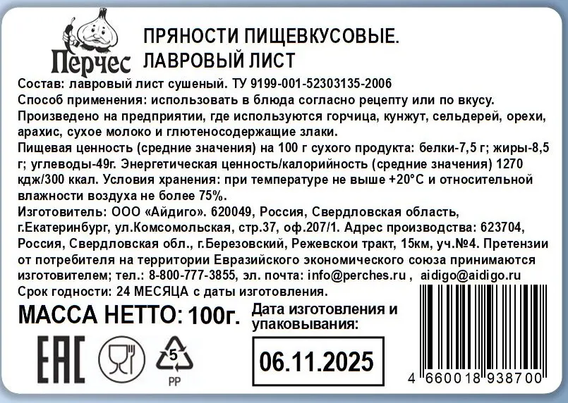 • Состав: лавровый лист