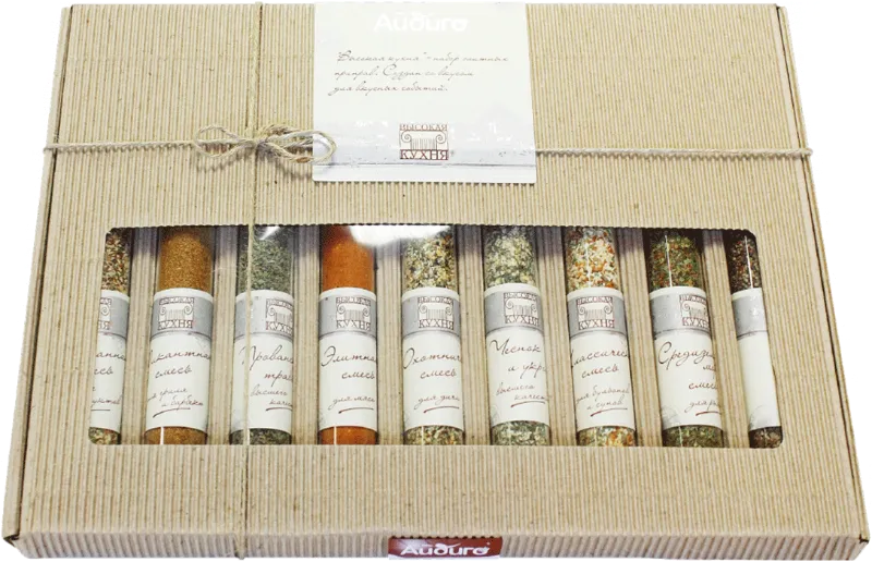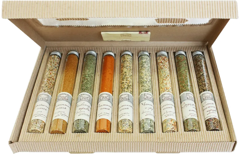 “Высокая кухня” - набор из 9 авторских смесей пряностей. Рецептуры приправ разрабатывались с участием профессиональных технологов и шеф-поваров.