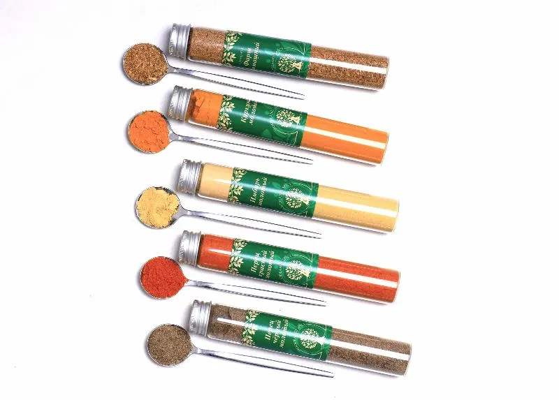 Авторские приправы для любимых блюд: «Фарш домашний», «Индейка сочная», «Свинина румяная», «Золотая рыбка», «Курочка румяная», «Универсальная», «Картофель ароматный», «Шашлык ароматный», «Плов восточный».
