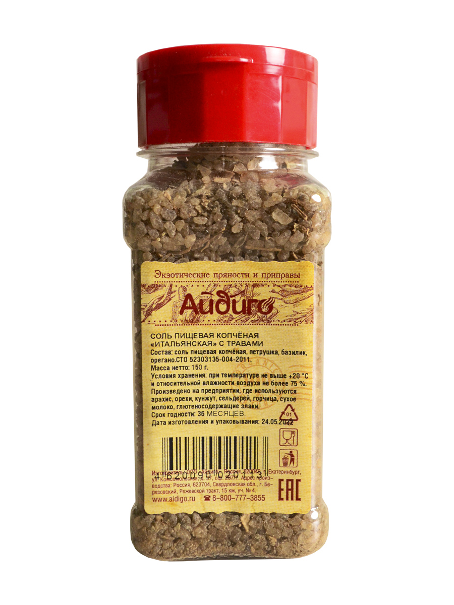 Соль копченая на ольхе "Итальянская" с добавлением трав: петрушки, базилика и орегано.