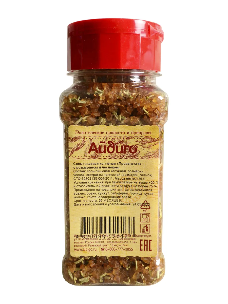 Состав: соль пищевая копченая, розмарин, чеснок, экстракты пряностей (розмарин, чеснок).
